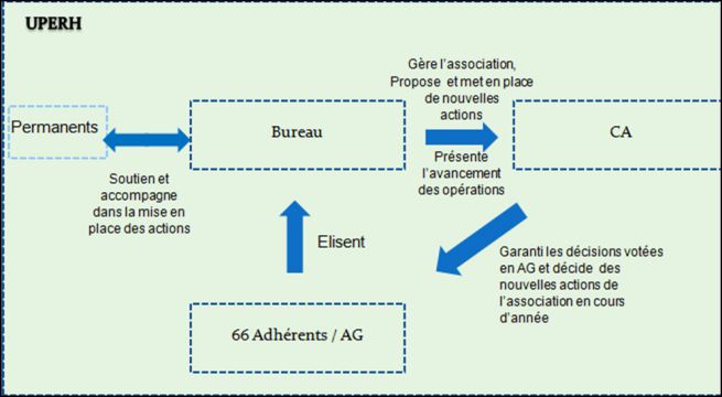 Les adhérents de l'association disposent d'un bureau, d'un Conseil d'administration et d'une équipe de permanents: