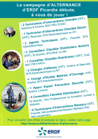 La campagne d'ALTERNANCE d'ERDF débute, des postes sont à pourvoir en Picardie du titre professionnel de niveau V à la licence, pour des formations de techniciens, agents techniques, conseillers, chargés d'affaires....